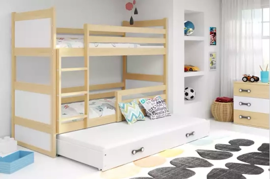 Lit ado superposé 3 places Rico 90X190 avec tiroir, pin/blanc