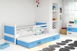 Lit ado gigogne Rico 90X200 avec matelas et tiroir, pin/bleu