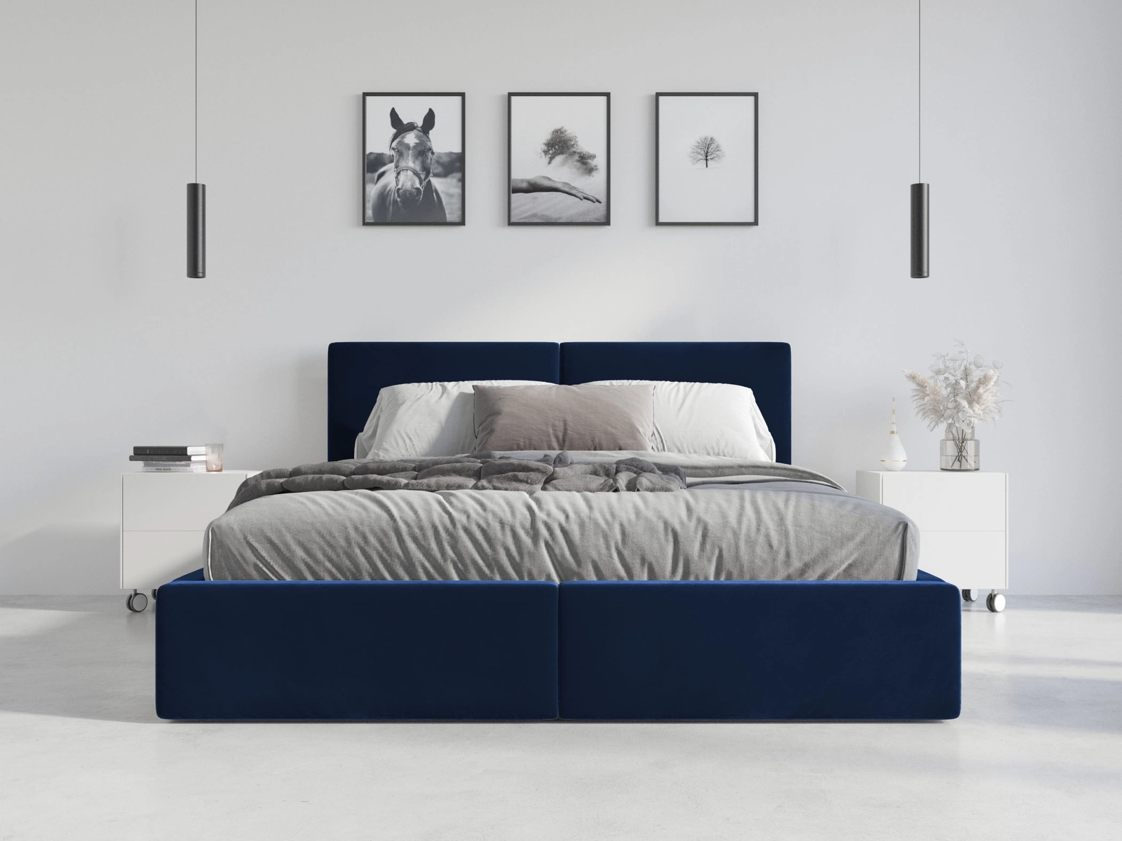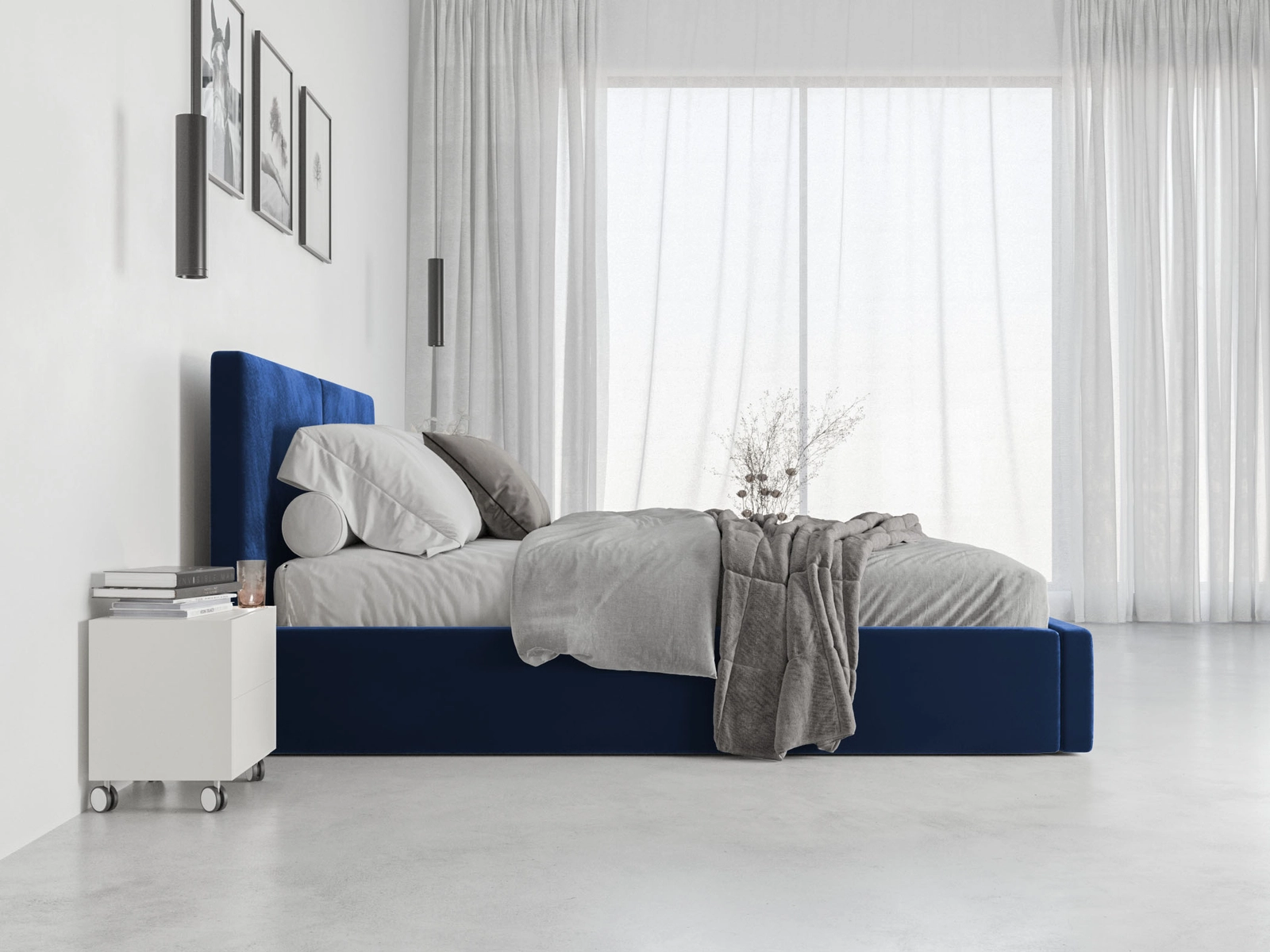 Lit double rembourré Le Hilton 120X200 avec coffre, bleu
