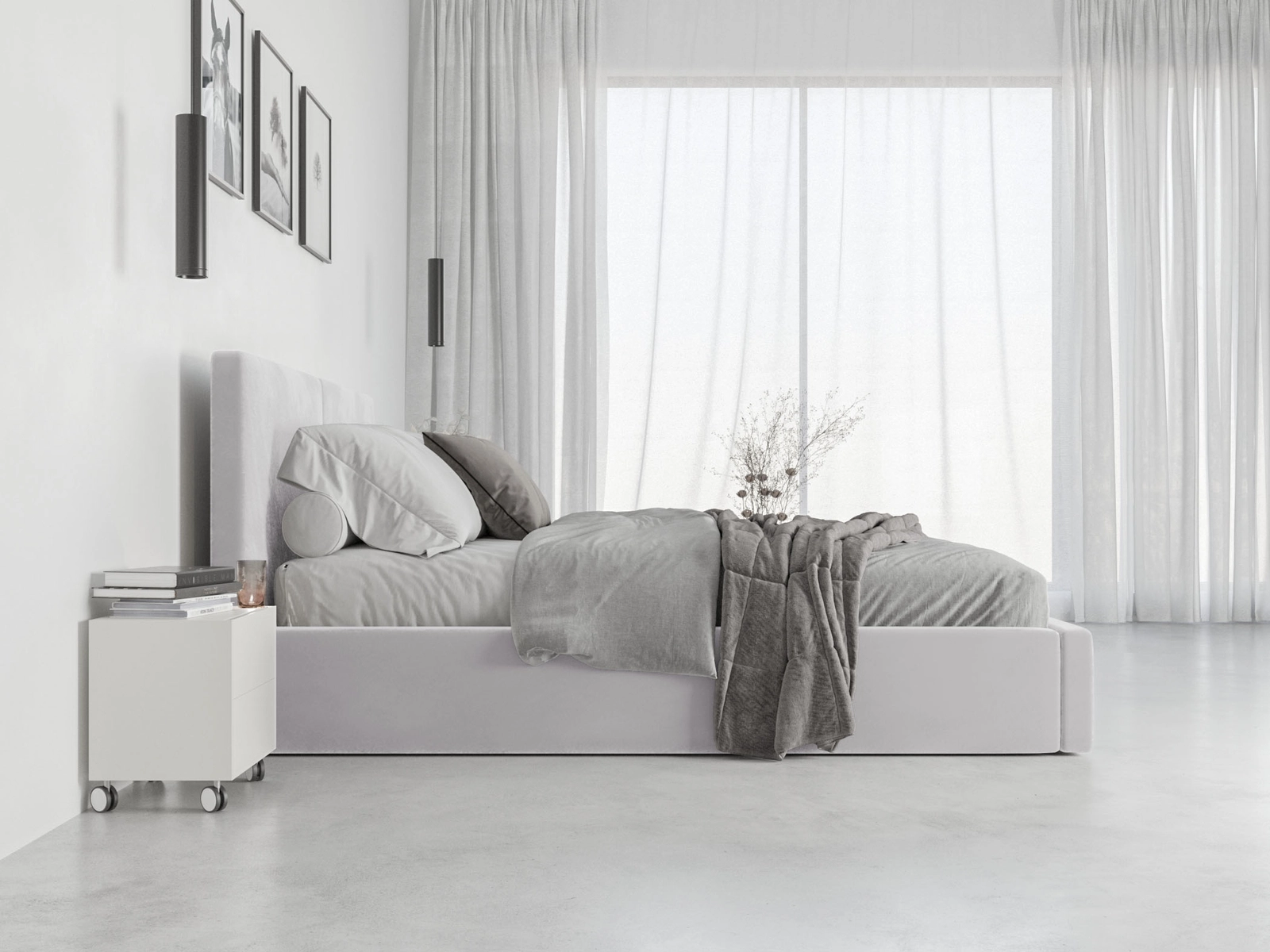 Lit double rembourré Le Hilton 140X200 avec coffre, gris clair
