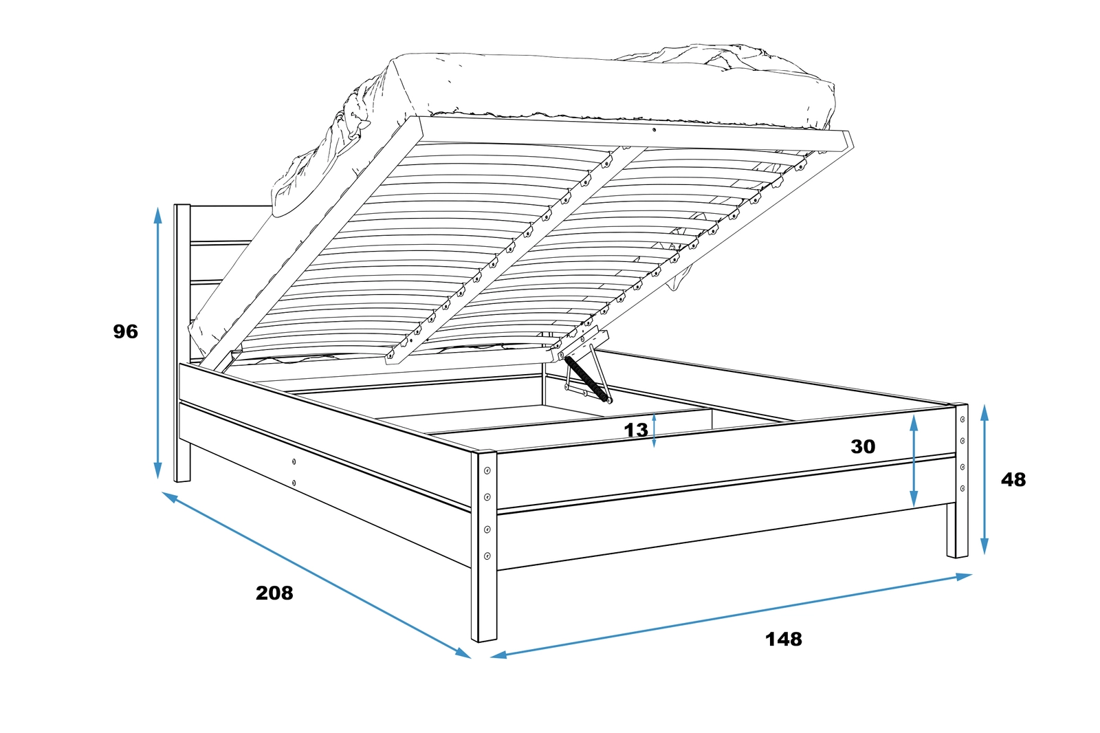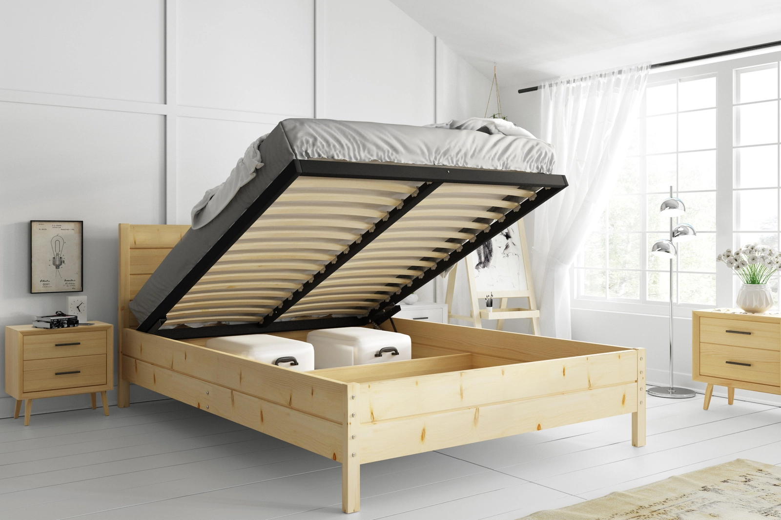 - Le lit en bois 140x200 avec coffre est la combinaison idéale de fonctionnalité et de design naturel. Le coffre à linge de lit offre un espace de rangement supplémentaire.