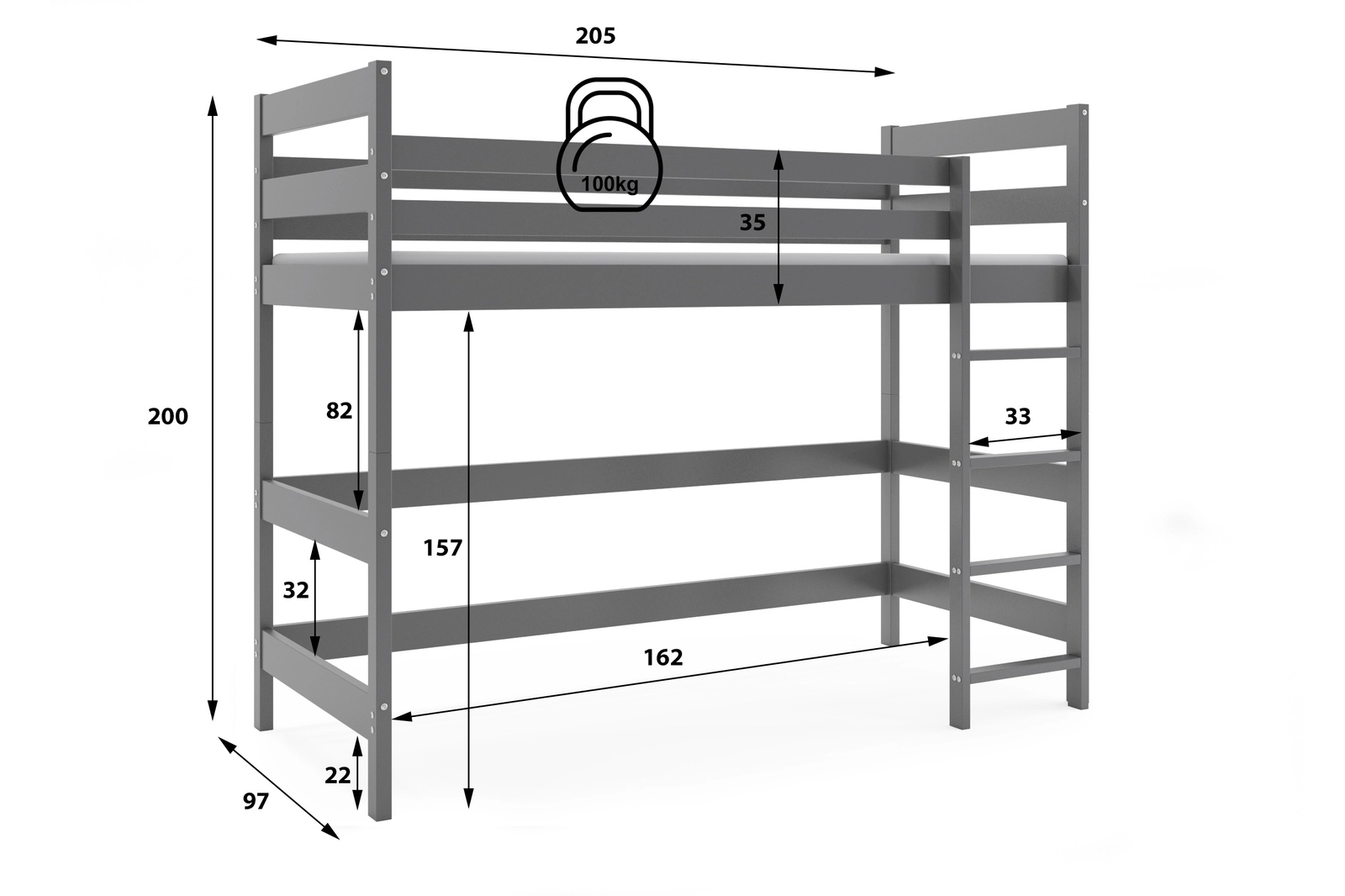 Lit mezzanine pour jeunes – gris graphite 90x200