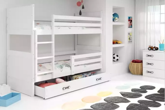 LIT ADOLESCENT SUPERPOSÉ RICO LE CADRE EN BLANC LES PANNEAUX BLANCS LE TIROIR EN BLANC 90 X 190