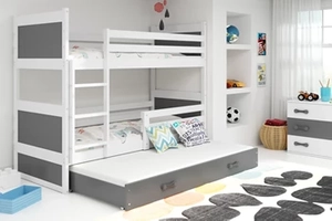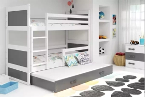 LIT ADOLESCENT SUPERPOSÉ 3 PLACES RICO LE CADRE EN BLANC LES PANNEAUX GRIS LE TIROIR EN GRIS 90 X 190