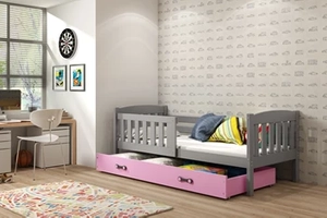 LIT ADOLESCENT GIGOGNE KUBUS LE CADRE EN GRIS LE TIROIR EN ROSE SANS MATELAS 90 X 200