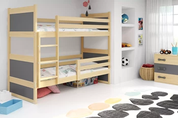 Lit ado superposé Rico 90X200 avec tiroir, pin/gris