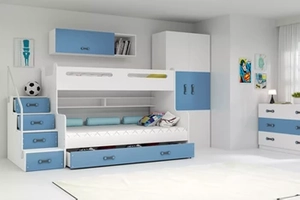 Lit ado superposé Max 3 120X200 avec matelas et tiroir, bleu