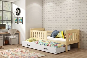 Lit ado gigogne Rico 90X200 avec tiroir, pin/blanc