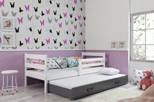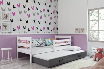 Lit ado gigogne Éric 90X200 avec tiroir, blanc/gris