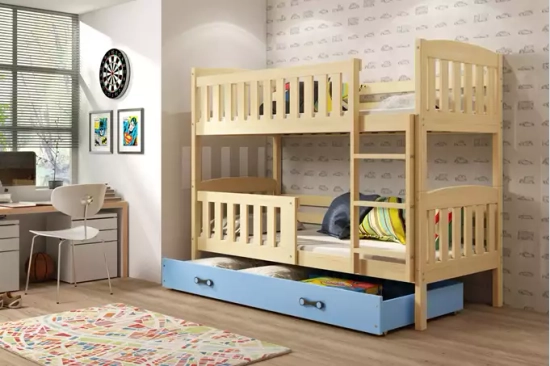 Lit ado superposé Jacquot 90X190 avec tiroir, pin/bleu