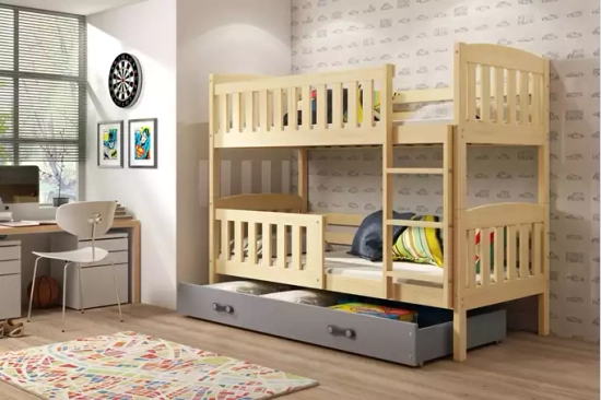 Lit ado superposé Jacquot 90X190 avec tiroir, pin/gris