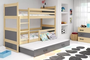 Lit ado superposé 3 places Rico 90X200 avec tiroir, pin/gris