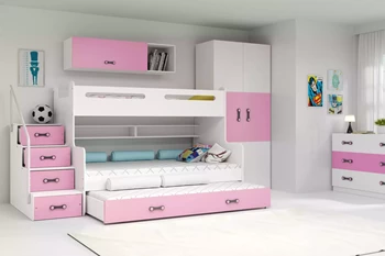 Lit ado superposé 3 places Max 3 120X200 avec matelas et tiroir, rose