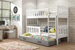 Lit ado superposé 3 places Jacquot 90X190 avec matelas et tiroir, blanc/gris