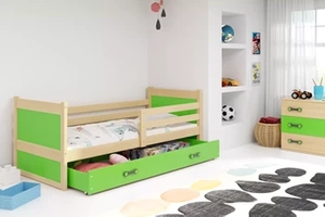 Lit ado simple Rico 90X200 avec tiroir, pin/vert