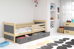 Lit ado simple Rico 90X200 avec tiroir, pin/gris