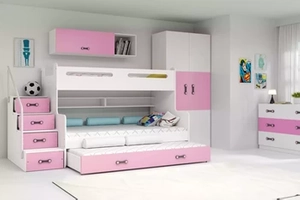 Lit ado superposé 3 places Max 3 120X200 avec tiroir, rose