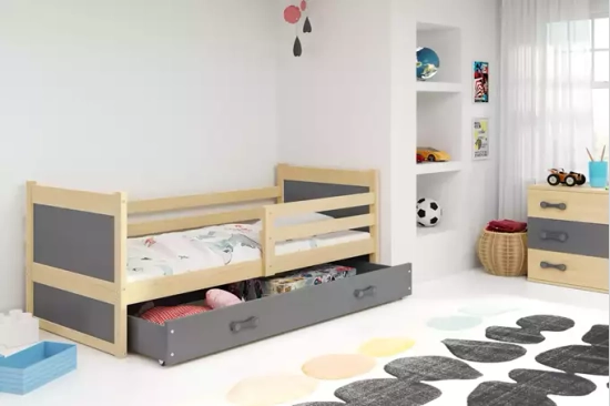 Lit ado simple Rico 90X190 avec tiroir, pin/gris