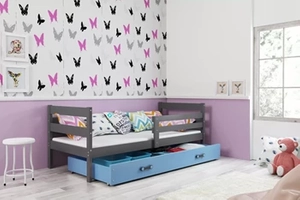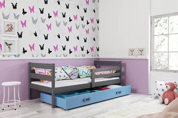 Lit ado simple Éric 80X190 avec matelas et tiroir, gris/bleu