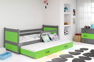Lit ado gigogne Rico 90X200 avec tiroir, gris/vert