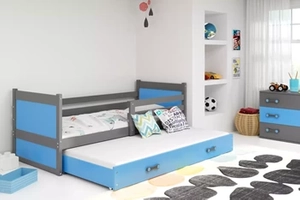 Lit ado gigogne Rico 90X200 avec tiroir, gris/bleu