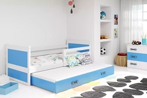 Lit ado gigogne Rico 80X190 avec matelas et tiroir, blanc/bleu