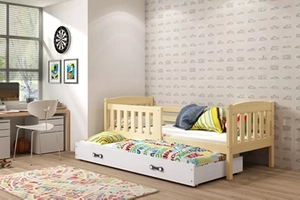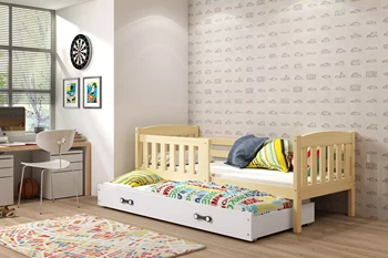Lit ado gigogne Jacquot 90X200 avec tiroir, pin/blanc