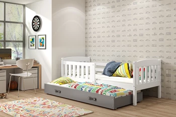 Lit ado gigogne Jacquot 90X190 avec tiroir, gris/blanc