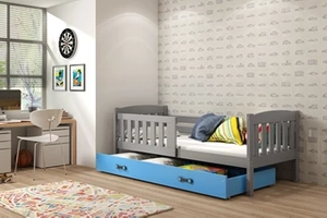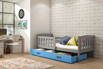 Lit enfant simple Jacquot 80X160 avec tiroir, gris/bleu