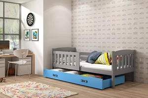 Lit enfant simple Jacquot 80X160 avec matelas et tiroir, gris/bleu