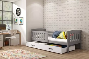 Lit enfant simple Jacquot 80X160 avec matelas et tiroir, gris/blanc
