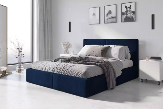 Lit double rembourré Le Hilton 160X200, bleu