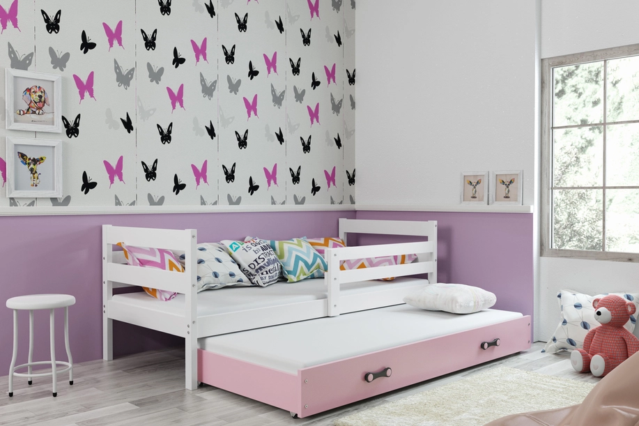 Lit ado gigogne Éric 90X190 avec matelas et tiroir, blanc/rose