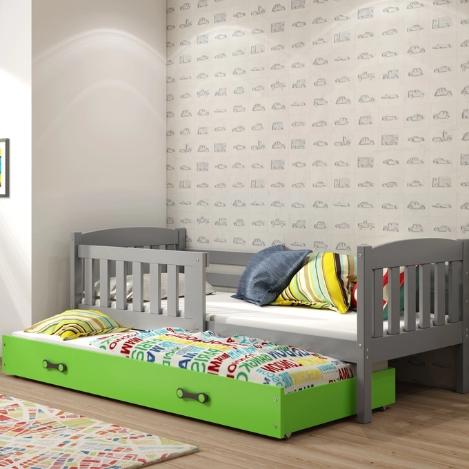 Stable et solide grâce a la construction en pin massif, il résistera non seulement au sommeil, mais aussi a presque tous les jeux des enfants de plusieurs années. Une barriere supplémentaire protege l’enfant sur le couchage supérieur, grâce a quoi cette partie conviendra a un enfant plus jeune. Le grand trésor gagne alors un espace spacieux et extremement confortable sur le tiroir coulissant. Les deux endroits sont tout aussi confortables et surs. Ils sont équipés d'un sommier flexible composé de lattes en bois, ce qui augmente le confort du sommeil et facilite la position correcte, grâce a laquelle la structure protege la colonne vertébrale. C'est un investissement dans leur santé maintenant et dans l'avenir.