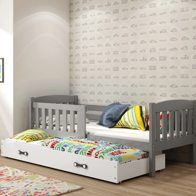 Stable et solide grâce a la construction en pin massif, il résistera non seulement au sommeil, mais aussi a presque tous les jeux des enfants de plusieurs années. Une barriere supplémentaire protege l’enfant sur le couchage supérieur, grâce a quoi cette partie conviendra a un enfant plus jeune. Le grand trésor gagne alors un espace spacieux et extremement confortable sur le tiroir coulissant. Les deux endroits sont tout aussi confortables et surs. Ils sont équipés d'un sommier flexible composé de lattes en bois, ce qui augmente le confort du sommeil et facilite la position correcte, grâce a laquelle la structure protege la colonne vertébrale. C'est un investissement dans leur santé maintenant et dans l'avenir.