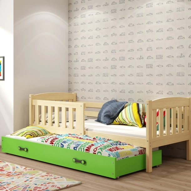 Lit ado gigogne Jacquot 90X190 avec tiroir, pin/vert