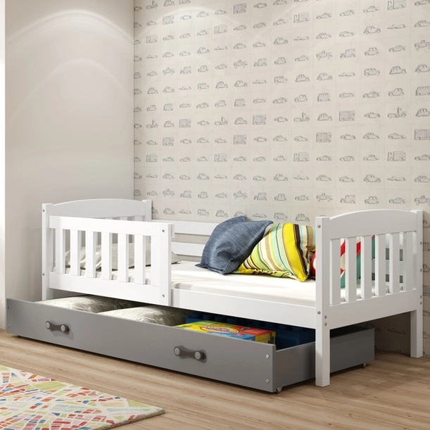 Lit ado simple Jacquot 90X190 avec tiroir, blanc/gris