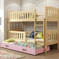 Lit ado superposé 3 places Jacquot 90X190 avec matelas et tiroir, pin/rose