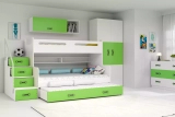 Lit ado superposé 3 places Max 3 120X200 avec matelas et tiroir, vert