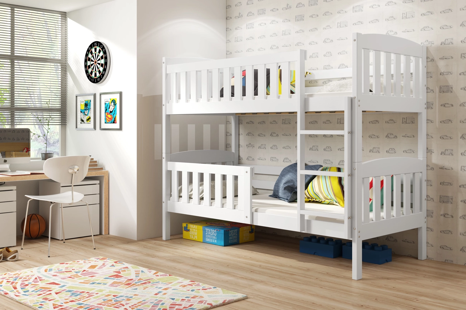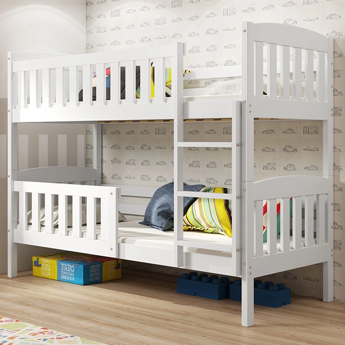 La structure a deux étages permet une utilisation optimale de l'espace, grâce a laquelle il y a plus d'endroits pour jouer ou étudier. La construction en bois de pin massif et renforcée avec des vis en acier de haute qualité est stable et durable. Ceci, a son tour, signifie la sécurité de vos enfants pendant le sommeil et votre repos paisible. Possibilité d'installer des barrieres des deux côtés pour donner plus de sécurité est le résultat de prendre soin d'eux. Ils protegent meme les enfants les plus mobiles et les plus énergiques contre les chutes. Le sommier composé de lattes flex en bois offre un excellent support pour la colonne vertébrale. La taille de 90x190 cm en fait un investissement pour des années. C'était parfait pour une chambre d'enfant de 3 ans et une chambre d'adolescent. Nous avons obtenu la couleur blanche en peignant la peau avec une peinture totalement sure et anti-allergique, ce qui rend le produit sans danger meme pour les enfants a la peau sensible. Une option neutre pour les garçons et les filles, qui vous permettra d’etre tranquille avec vos petits. La structure arrondie donne l'impression d'etre plus légere, grâce a quoi elle ne submerge pas l'intérieur malgré sa taille.