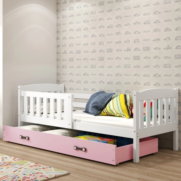 LIT ADOLESCENT KUBUS LE CADRE EN BLANC LE TIROIR EN ROSE SANS MATELAS 90 X 200