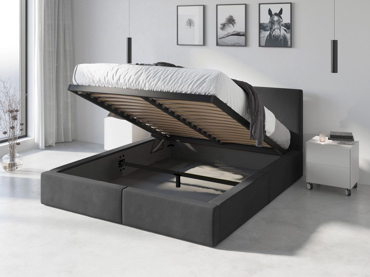 Lit double rembourré Le Hilton 120X200 avec coffre, graphite