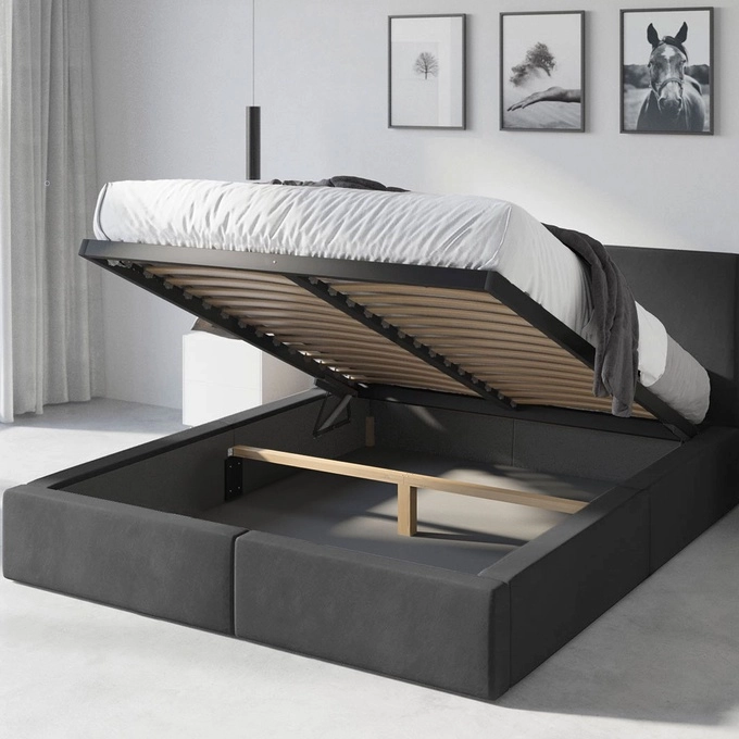 - La structure du lit est en panneau stratifié de haute qualité, caractérisé par sa durabilité et sa facilité de nettoyage. La tete de lit et cadre sont rembourrés ce que rend ce lit particulierement confortable. Matériau de rembourrage se caractérise par une structure délicate et une surface recouverte d'un fin duvet, résistant a l'abrasion, au pelage et a la lumiere. Le matériau a les propriétés d'une absorption limitée des fluides, ce qui a un effet positif sur sa propreté.