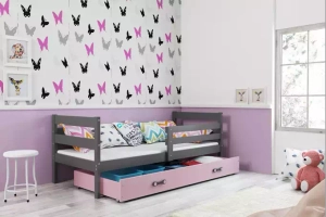 Lit ado simple Éric 90X190 avec tiroir, gris/rose