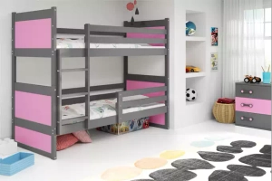 Lit ado superposé Rico 90X190 avec tiroir, gris/rose