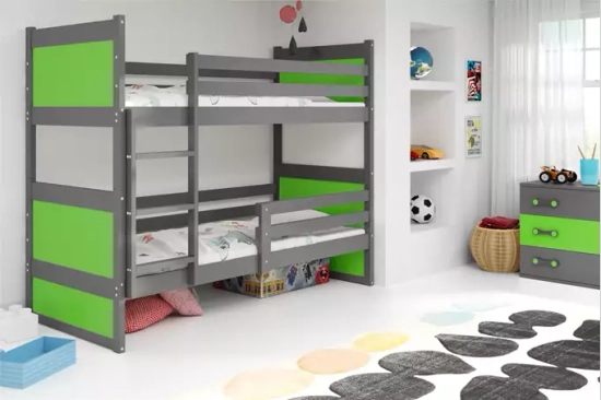 Lit ado superposé Rico 90X190 avec tiroir, gris/vert