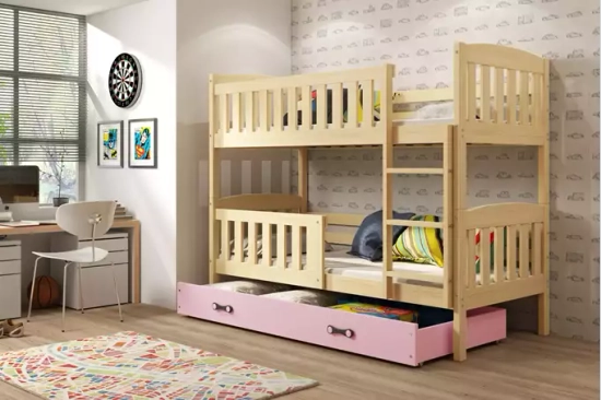 Lit ado superposé 3 places Rico 90X190 avec tiroir, pin/rose