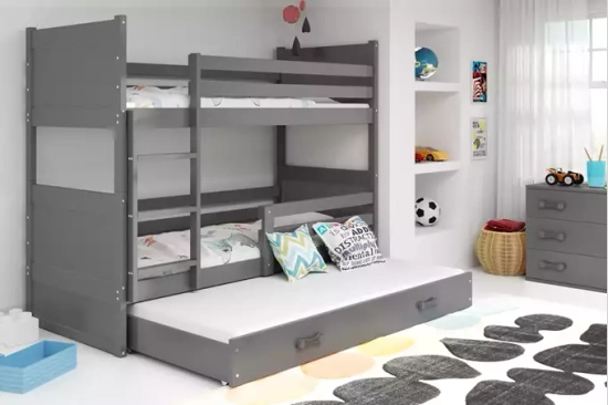 Lit ado superposé 3 places Rico 90X190 avec tiroir, gris
