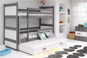 Lit ado superposé 3 places Rico 90X190 avec tiroir, gris/blanc