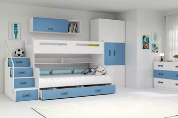 Lit ado superposé 3 places Max 3 120X200 avec tiroir, bleu